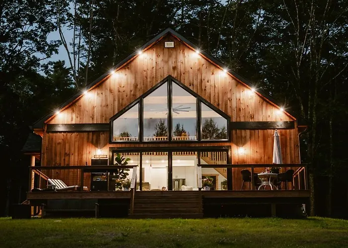 Cet établissement Luxe Modern Cabin With Pond, Fire Pit, Hiking, Near Bethel Woods Narrowsburg est situé à 3 km de Delaware Valley Opera Corp et vous invite à profiter d'une terrasse.
